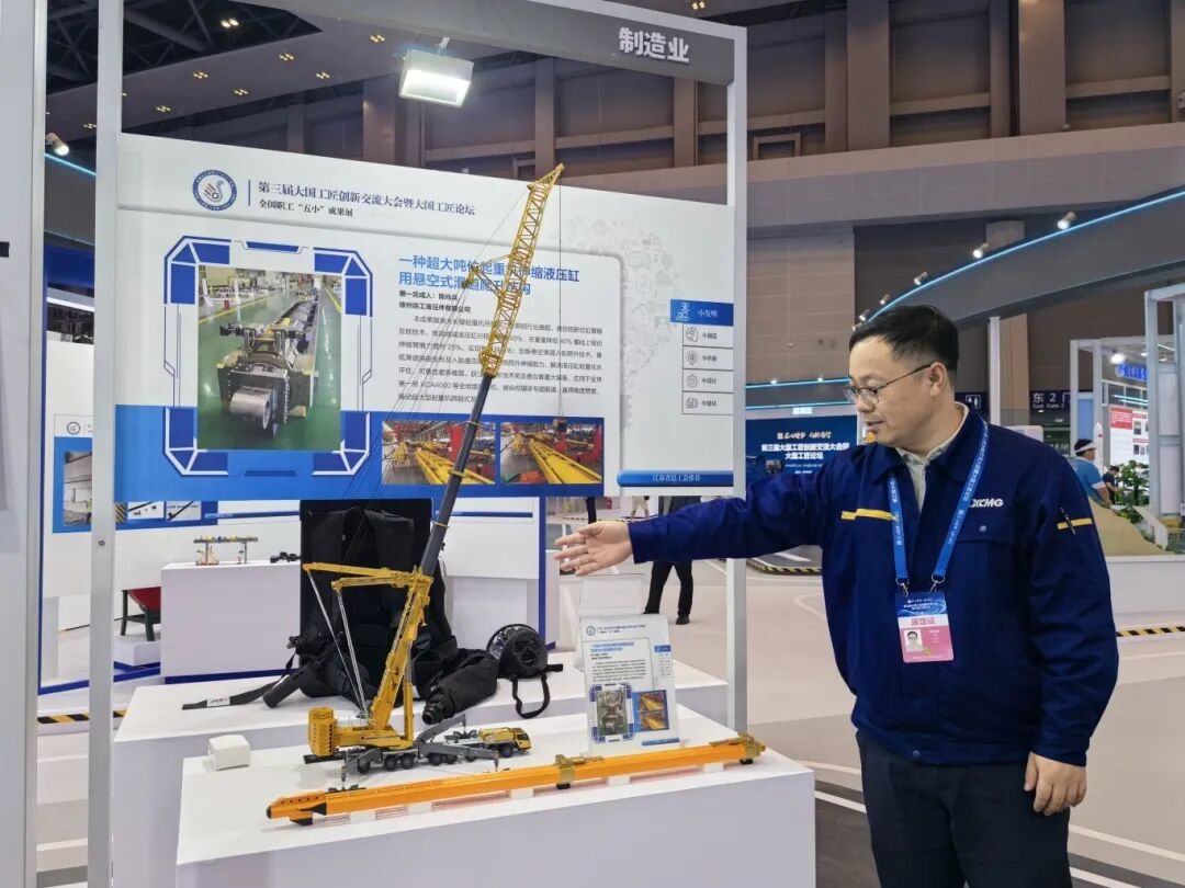以匠心致創(chuàng)新,徐工人在攻克核心難題上從不缺席。徐工液壓事業(yè)部陳向兵完成的“一種超大噸位起重機伸縮液壓缸用懸空式滑道爬升結(jié)構(gòu)”亮相全國總工會“五小”成果展區(qū)。