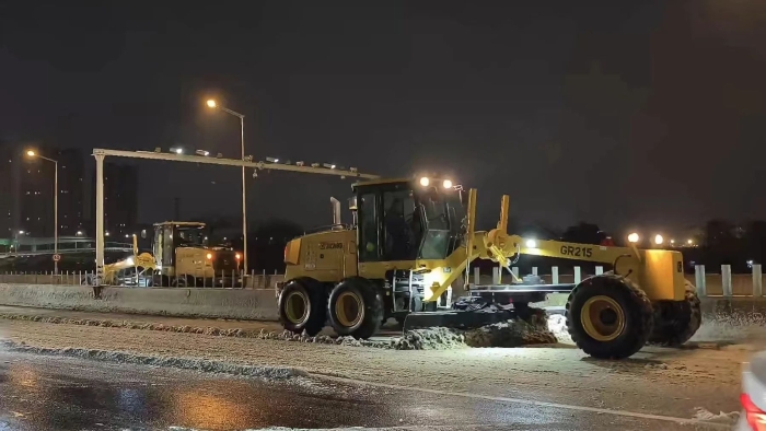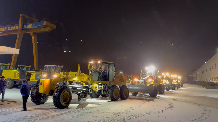 徐工平地機(jī)加滿油箱,列隊集合、整裝待發(fā),全力以赴投入到破冰除雪,為道路暢通和行車安全保駕護(hù)航。徐工的機(jī)手們更是發(fā)揮了徐工人無畏艱苦、敢于奉獻(xiàn)的精神,以高度的責(zé)任感和使命感,堅守在除雪一線,保障市民的安全出行。冰雪紛飛的夜幕下,徐工平地機(jī)的燈光照亮了歸家人的路。