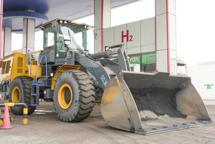 徐工氫能電動(dòng)裝載機(jī),以氫氣作為動(dòng)力能源,在燃料電池系統(tǒng)與氧氣發(fā)生化學(xué)反應(yīng)產(chǎn)生電流,產(chǎn)物僅有電、熱量與水,有效減少燃油造成的空氣污染等問題,實(shí)現(xiàn)零碳排放。