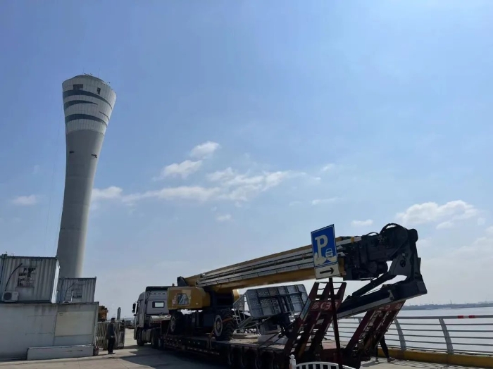 據(jù)悉,此次徐工XGS70K接到的任務是在25天時間之內(nèi),完成上海吳淞口國際郵輪港燈塔4個引導燈安裝和外墻4個直徑近兩米破損面的修補。