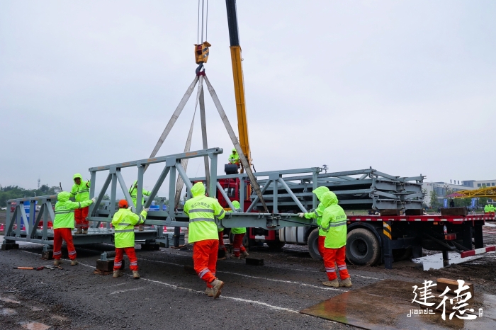 本次演練以山洪爆發(fā)、泥石流、臺風(fēng)等極端氣候造成的道路內(nèi)澇深坑積水、道路大面積塌方、公路橋梁沖毀以及?;愤\(yùn)輸車泄漏等特殊情況為背景,模擬公路水毀阻塞交通、橋梁垮塌中斷交通,演練隊(duì)伍嚴(yán)正執(zhí)行,在規(guī)定時限內(nèi)迅速完成桁架拼裝、橋面鋪設(shè)、橋梁落座,完成公路應(yīng)急裝備漕渡任務(wù)。