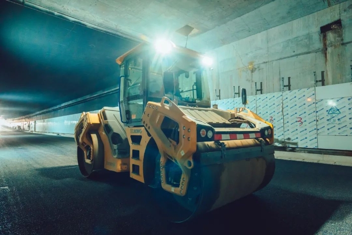 徐工成套高端油面設(shè)備,憑借引領(lǐng)行業(yè)的產(chǎn)品技術(shù)實(shí)力,為媽灣跨海通道的道路建設(shè)提供了成套化的高效施工解決方案,確保隧道路面施工作業(yè)圓滿實(shí)施。