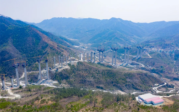 樂(lè)望高速是黔桂兩地便捷連通的重要省際通道,主線橋隧比達(dá)78%,是目前廣西橋隧比最高的高速公路。雅長(zhǎng)特大橋作為樂(lè)望高速控制性工程之一,全長(zhǎng)2312米,主橋主墩最大高度155米,為廣西第一高墩。