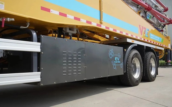 采用16度電池和600升油箱,配備車載發(fā)電機。泵送作業(yè)時,燃油智能補電;使用充電樁充電,電池充滿僅需1小時;家庭用電也可實現(xiàn)充電。告別用電焦慮,工作更安心。