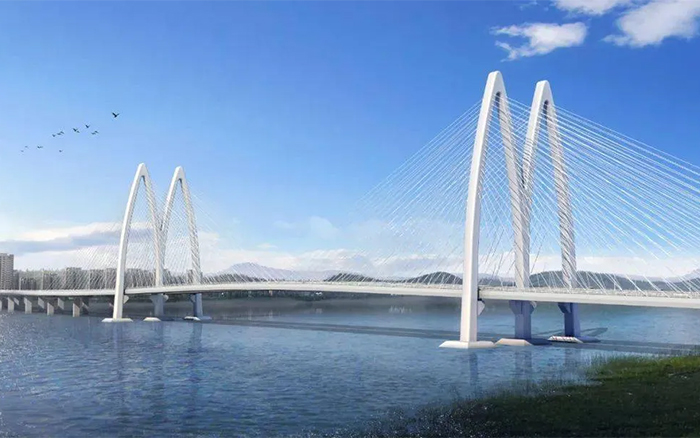 遂寧涪江六橋項(xiàng)目建設(shè)現(xiàn)場(chǎng)