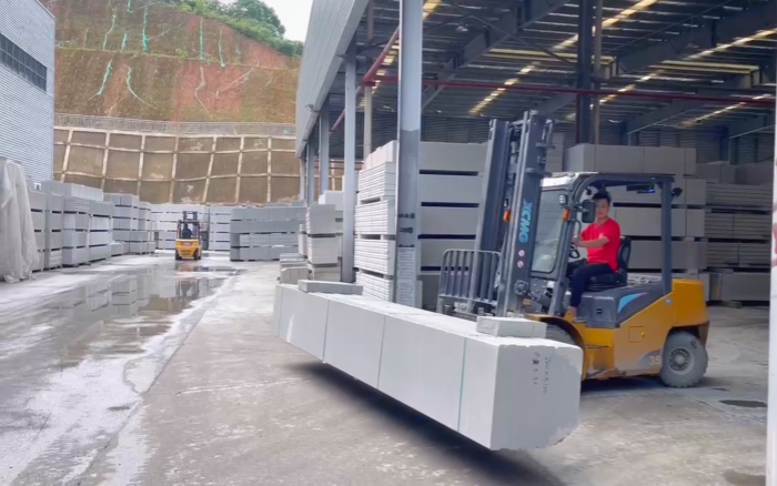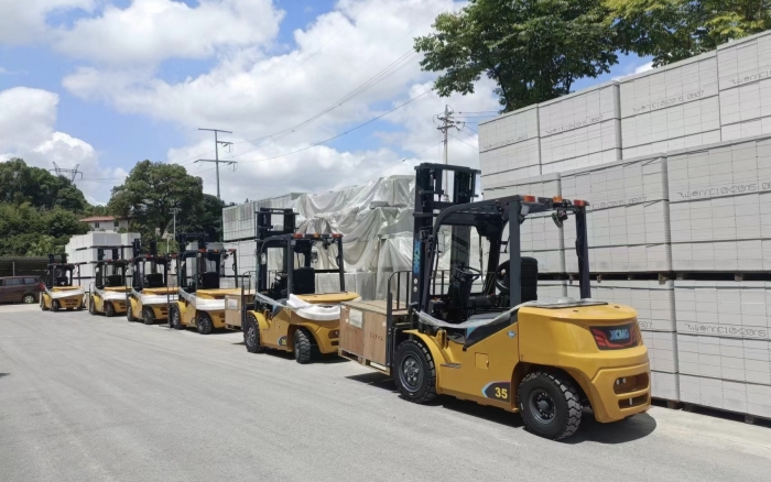 湖南某石材廠內(nèi),徐工叉車新 E 系列電動平衡重叉車,耀世登場!