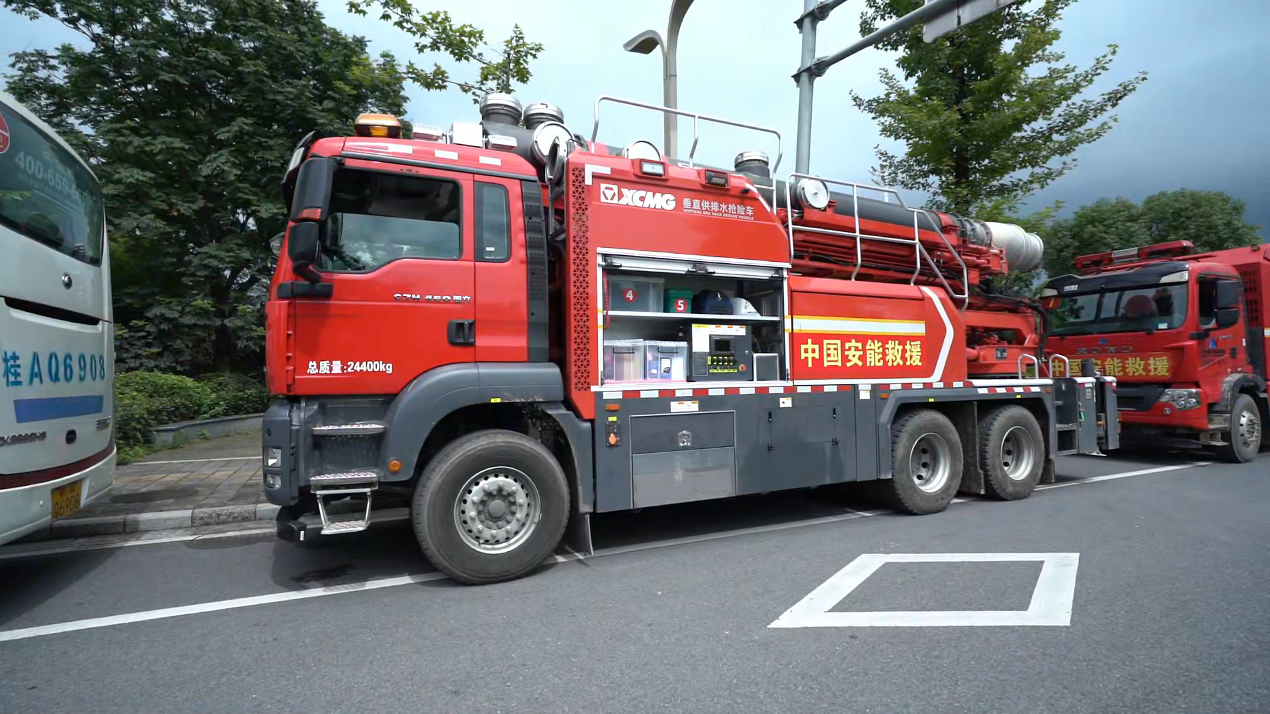 作為當(dāng)?shù)刂匾慕煌屑~,桂林火車站擁有一個占地約8000㎡的地下車庫,暴雨引發(fā)的城市內(nèi)澇如灌注一般將上下兩層地下車庫淹沒至兩端入口。6月21日接到任務(wù)后,救援隊伍當(dāng)機(jī)立斷,連夜奔襲,出動徐工GP35C垂直式排水搶險車,從地庫入口處進(jìn)行抽排水搶險作業(yè)。經(jīng)過72小時連續(xù)作業(yè),累計抽排水超30000m3,最終于24日上午圓滿完成任務(wù)。