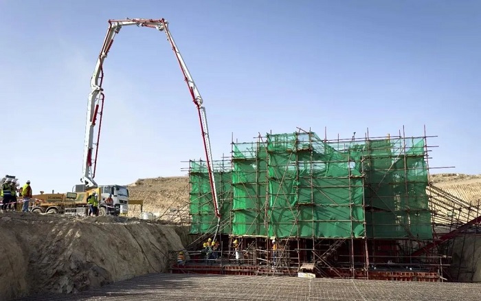 此次工程不僅面臨施工設備和材料供應奇缺等難題,且厄籍職工沒有大型混凝土澆筑經驗,加之項目澆筑需要長時間、大方量的持續(xù)性作業(yè),施工困難重重。徐工HB43V泵車和徐工攪拌車協(xié)力共進,完美應對此次澆筑任務。