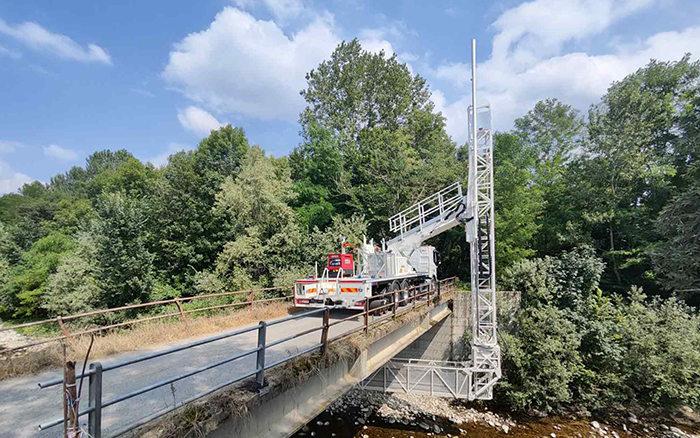 風(fēng)景秀麗的阿爾卑斯山前,一個(gè)白色臂膀半“摟”住歷史悠久的歐洲古橋……占據(jù)這張靚麗風(fēng)景照C位的,是正在進(jìn)行橋梁檢修維護(hù)的徐工橋梁檢測車。