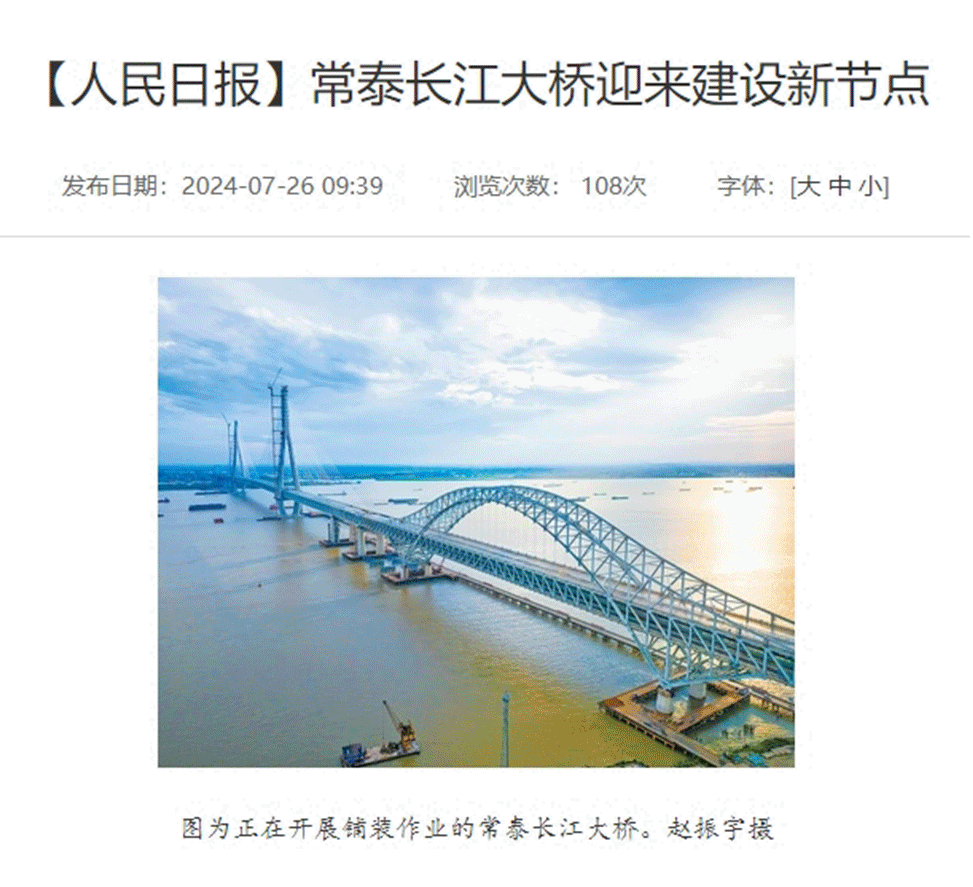 常泰大橋近日迎來了項(xiàng)目新突破——