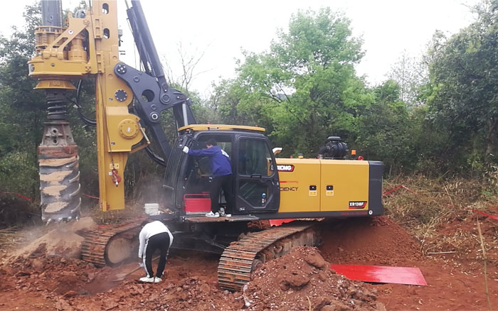 現(xiàn)場(chǎng)施工樁徑1000mm左右,樁深7.5-13m,徐工XR138F日鉆孔達(dá)20m??蛻糍潎@道:“徐工產(chǎn)品設(shè)備穩(wěn)定,成孔精度高,施工效率快,值得信賴!”