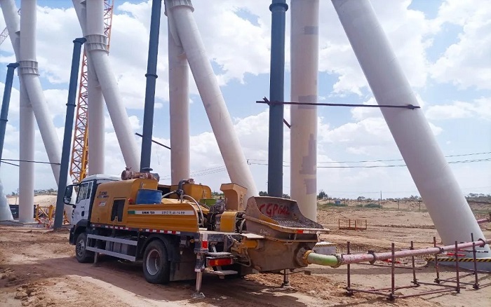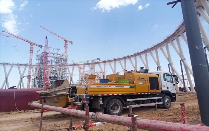 項目亮點之一的間冷塔,采用了創(chuàng)新的鋼管混凝土X柱結(jié)構(gòu),單柱高達30米,重達51.9噸。然而,隨著泵送高度的攀升,混凝土黏度急劇增加,泵送過程中極易出現(xiàn)憋壓熄火現(xiàn)象,對施工設備提出了前所未有的要求。