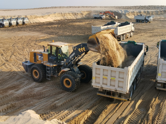亞洲某國,新建大型公園建設現(xiàn)場,徐工LW700HV與ZL50GN相互配合高效進行著土方作業(yè)。2020年,客戶開始采購徐工設備,對ZL50的作業(yè)性能與可靠性非常滿意,隨著業(yè)務量的不斷增加,客戶開始考慮大噸位產(chǎn)品。經(jīng)過當?shù)匦旃やN售的全力推薦,客戶加購了徐工LW700HV裝載機,該產(chǎn)品也已優(yōu)異表現(xiàn)贏得客戶的贊賞。配合自卸車,對密度約1.8t/m3的沙土進行轉(zhuǎn)運作業(yè),徐工LW700HV搭配4.5m3鏟斗作業(yè)起來效率驚人。