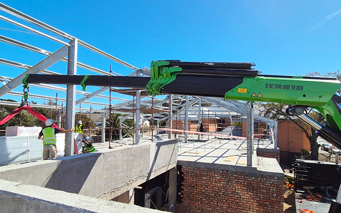 在海外某建筑工地現(xiàn)場可以看到,徐工GSQZ860折疊臂隨車起重機(jī)加裝兩節(jié)手動臂,輕松跨越建筑物二樓復(fù)雜的鋼結(jié)構(gòu),完成了高處的物料轉(zhuǎn)運(yùn)作業(yè),優(yōu)越跨障能力和穩(wěn)定作業(yè)表現(xiàn)獲得了現(xiàn)場施工人員的認(rèn)可和好評。