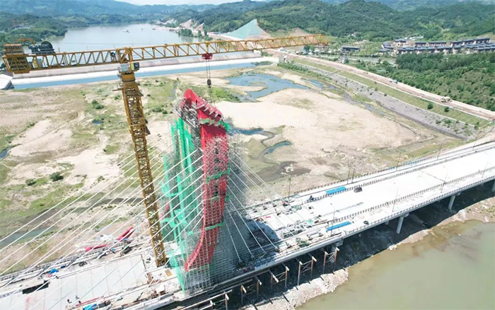 隨著重達(dá)40噸的主橋鋼塔柱最后一個節(jié)段