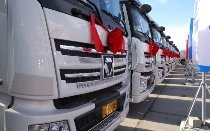 徐工汽車重卡銷售公司總經(jīng)理齊玉興,騏進集團總經(jīng)理張虎,客戶代表楊平、郭樹昌,哈密卡車協(xié)會會長王曉偉等領導共同出席交車儀式。