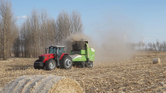 在內(nèi)蒙古,徐工XT2004拖拉機(jī)牽引著大型圓捆打捆機(jī)穩(wěn)步前行。轟鳴聲中,散落的秸稈被高效歸整,發(fā)動機(jī)的穩(wěn)定節(jié)拍與草原春風(fēng)合奏出春耕序曲。