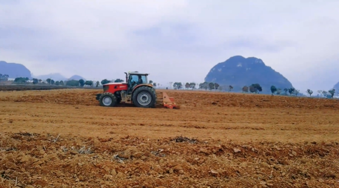 在完成耕深約50厘米的犁地作業(yè)后,牽引著3米幅寬的重型旋耕機穩(wěn)穩(wěn)駛過蔗田,對25厘米耕作層進(jìn)行精細(xì)化碎土整地,有效改善板結(jié)土壤結(jié)構(gòu)。
