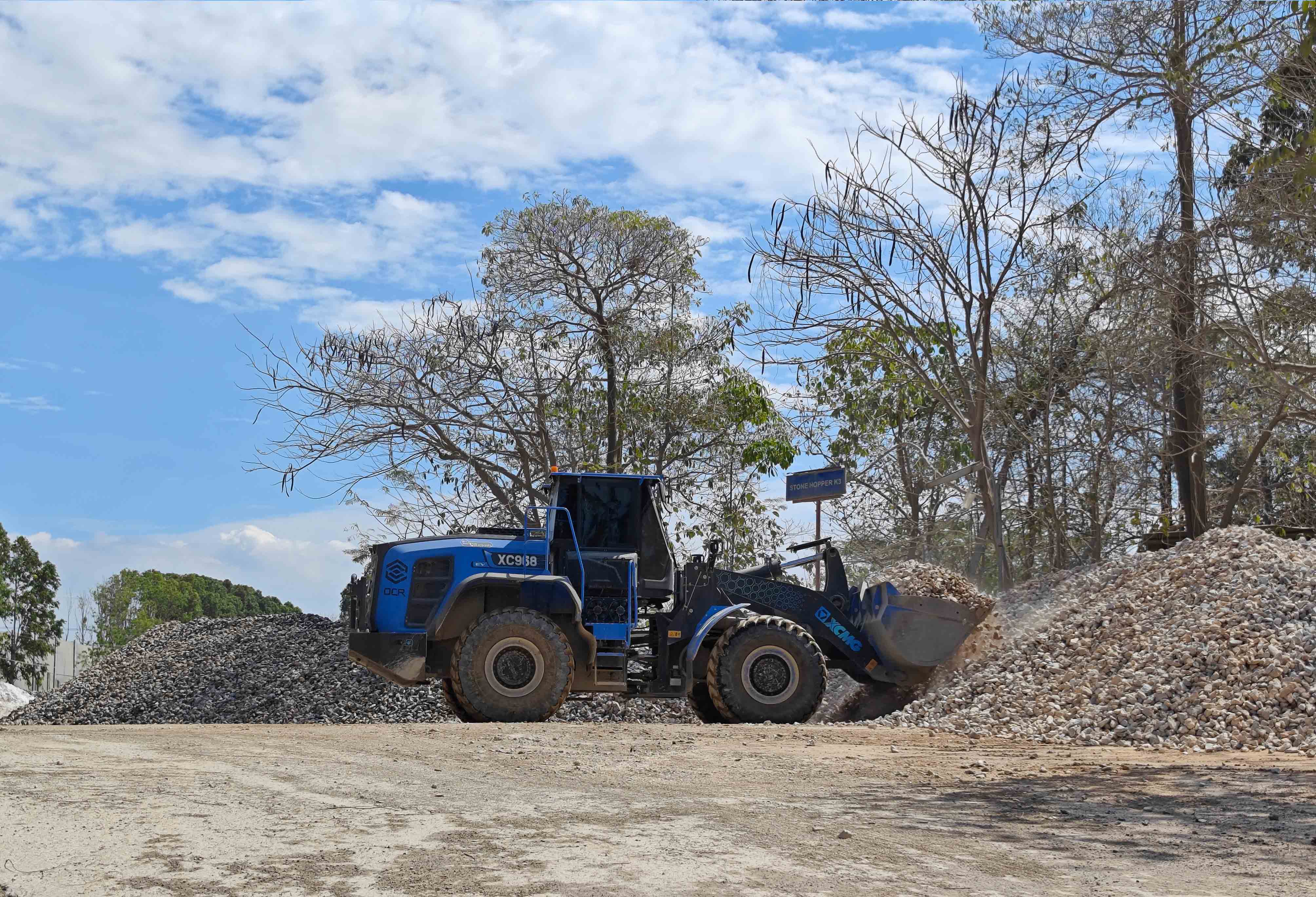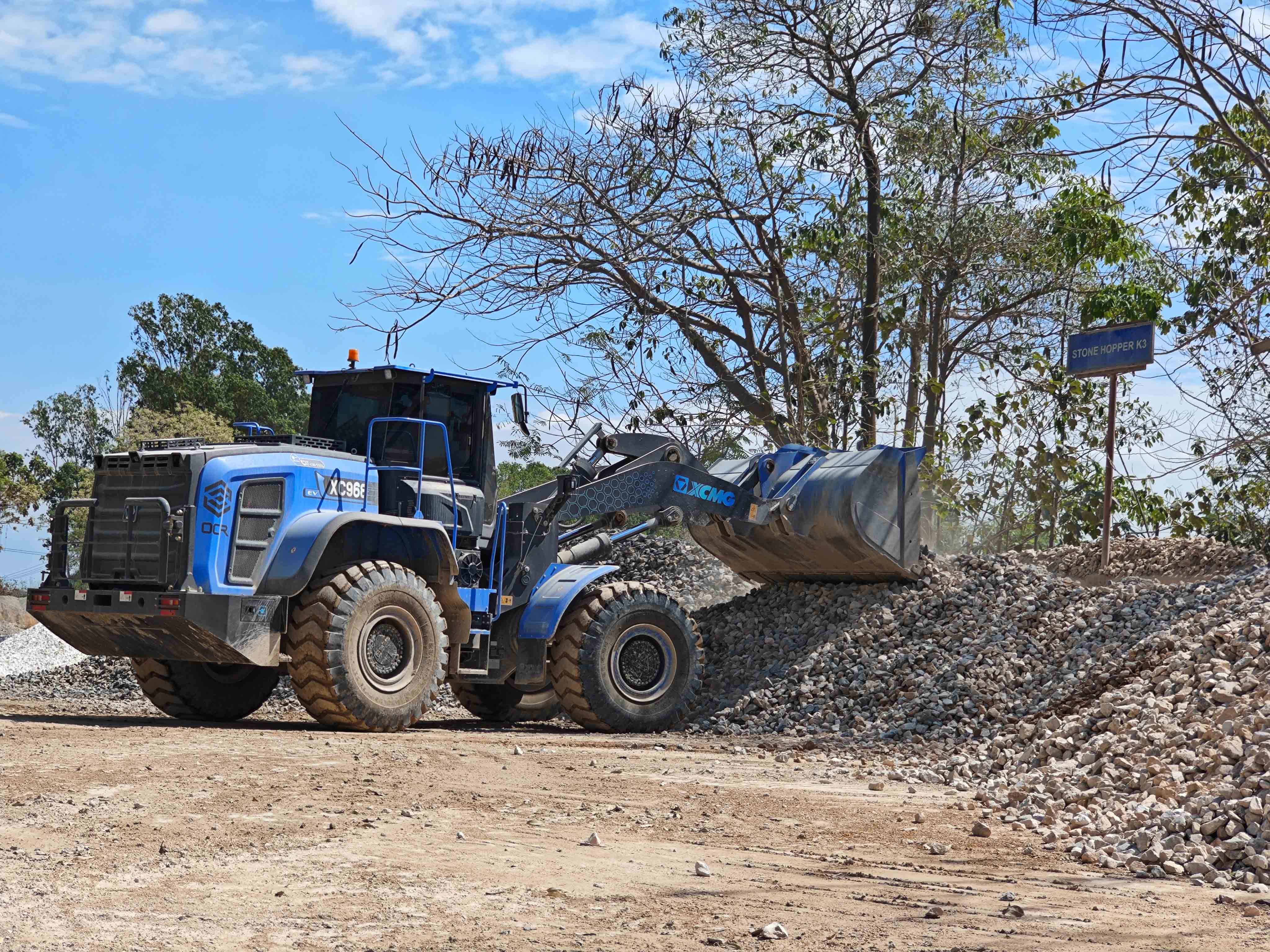 礦山生產(chǎn),作業(yè)時間長,物料堅硬密度高,道路崎嶇,工況較為險重。徐工XC968-EV純電動裝載機(jī)的新能源優(yōu)勢,在礦道端的鏟裝作業(yè)優(yōu)勢非常明顯,相對密閉空間內(nèi),零排放、低噪音對工段一起作業(yè)的戶外工作人員的健康非常友好。