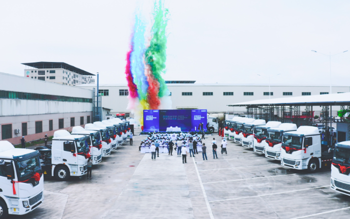 近日,百臺徐工新能源重卡交付儀式在“世界客都”——廣東梅州如期舉行,助力當(dāng)?shù)厣笆?、水泥輔料及煤炭運輸。客戶及徐工汽車代表等百余人參加活動。