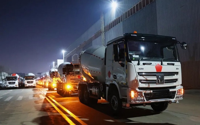 百余臺(tái)定制版52/58/62米泵車、12方攪拌車,列隊(duì)鳴笛,從徐州基地發(fā)往中東。產(chǎn)品采用耐高溫液壓系統(tǒng)與節(jié)油技術(shù),適配中東極端環(huán)境,助建NEOM未來新城等超級(jí)工程。