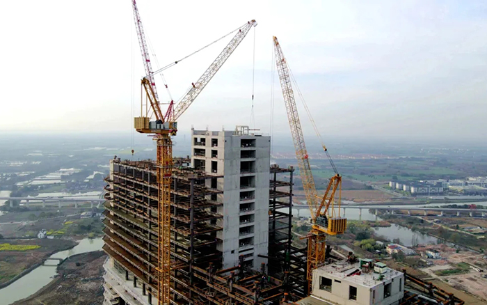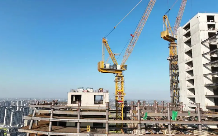 高效、可靠的徐工XGL630-50S塔機(jī)承擔(dān)著樓承板、鋼結(jié)構(gòu)和核心筒主體結(jié)構(gòu)等建筑材料的吊裝重任。歷時(shí)340天,從大象酒店的象腿、象鼻三個(gè)核心筒結(jié)構(gòu)施工,徐工塔機(jī)高效吊裝,配合施工人員完成了從0到180米的建設(shè)征程。