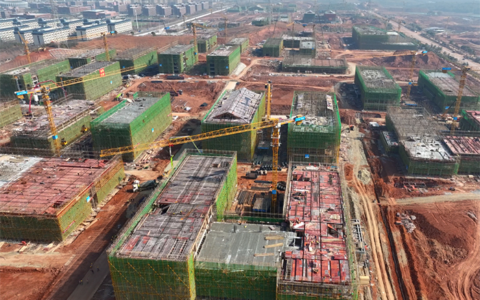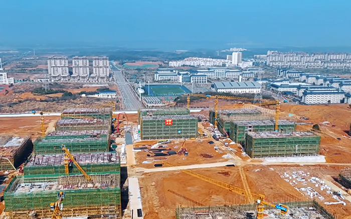 三江之口,七省通衢。在江西省九江市,37臺徐工XGT6013-6S1塔機批量參建南昌工學(xué)院共青校區(qū)項目,施工現(xiàn)場一片火熱,群塔施工緊張有序,“徐工金”成為現(xiàn)場最亮眼的一道景色。