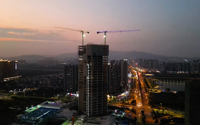 與高樓肩并肩,讓夢想都實現(xiàn)。3臺XGT6515E-10S塔機在施工現(xiàn)場運轉(zhuǎn)自如,相互配合,合力保障項目施工建設(shè)。