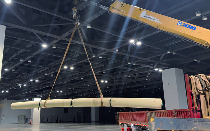 施工中,徐工隨車起重機憑借高強度鋼材打造的起重臂,展現(xiàn)出驚人的起重能力。吊運成卷塑膠卷材時,它動作流暢,如行云流水般將材料從貨箱卸下,穩(wěn)穩(wěn)送至場館指定鋪設位置。面對數(shù)噸重的特殊塑膠材料吊運難題,其四節(jié)臂體同步伸縮,輕松完成任務?!斑@設備的帶載能力遠超預期,再重、再難的吊運都不在話下!” 現(xiàn)場項目負責人對徐工隨車起重機的強大性能給予高度評價。