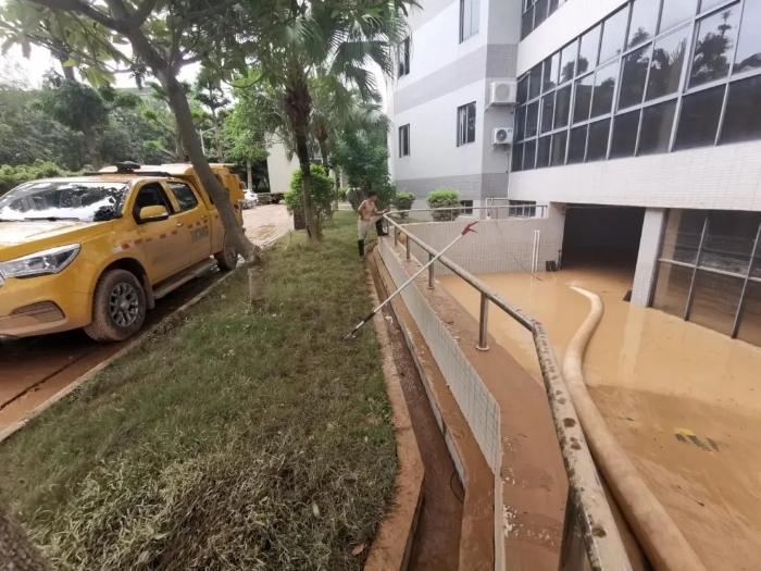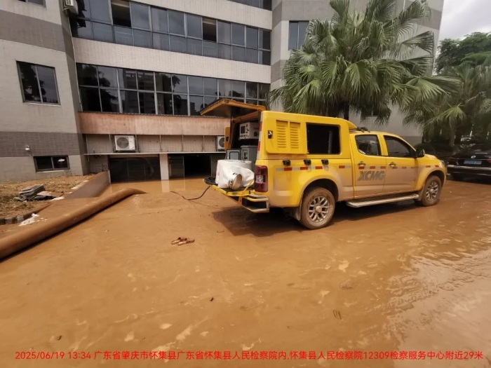 懷集縣人民檢察院地下車庫(kù)遭大量積水倒灌,水位迅速上漲,停放車輛和設(shè)施面臨嚴(yán)重威脅。由于地下車庫(kù)空間狹窄,大型救援車輛難以施展身手,排澇工作陷入困境。