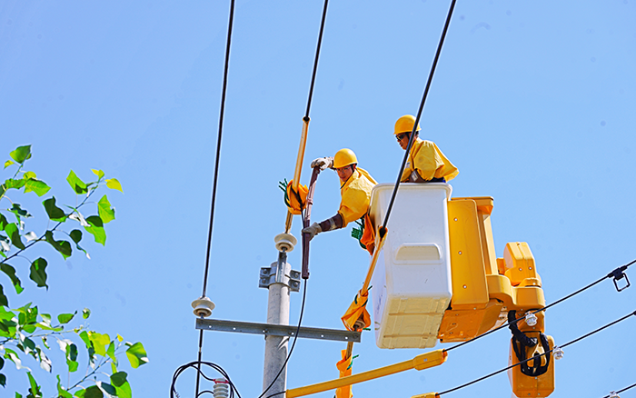 工作人員借助絕緣斗臂車,快速、精準(zhǔn)地抵達(dá)作業(yè)位置。他們身著厚重的絕緣服,有條不紊地開展更換變壓器工作。盡管汗水早已濕透衣衫,但大家的眼神中透露出專注與堅(jiān)定?!敖^緣服里像蒸桑拿,好在設(shè)備噪聲小、連續(xù)干活不‘掉鏈子’,不然真扛不住這高溫持久戰(zhàn)?!?一位作業(yè)人員抹著額頭的汗說。