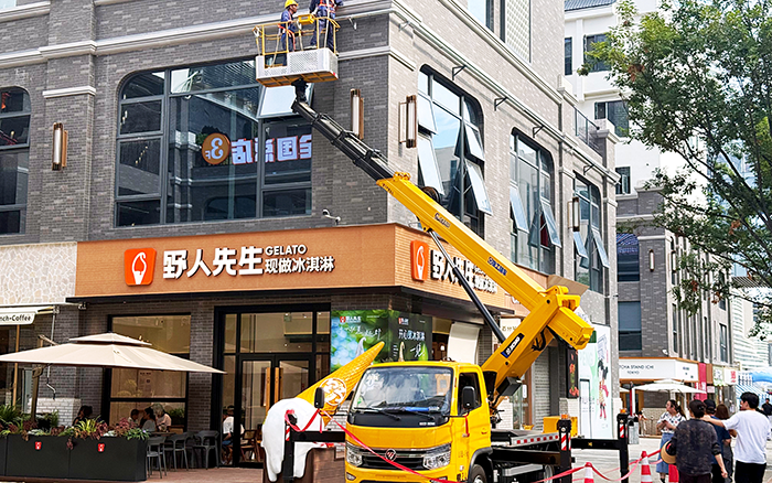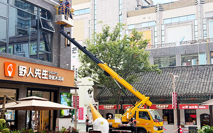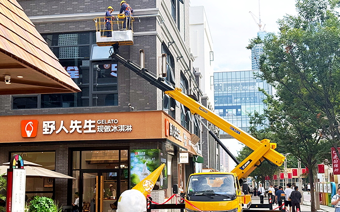 作為藍(lán)牌車型,GKS28 輕松穿梭于狹窄的街區(qū)巷道,無需復(fù)雜通行審批,到場后迅速進(jìn)入作業(yè)狀態(tài)。施工地周邊商鋪林立、行人如梭,施工區(qū)域被密集人流環(huán)繞,對設(shè)備的靈活性與安全性提出極高要求。