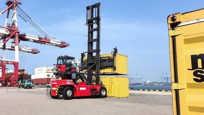 在山東港口繁忙的作業(yè)前沿,徐工純電動(dòng)堆高機(jī)舉重若輕,動(dòng)作行云流水——快、穩(wěn)、準(zhǔn),高效流轉(zhuǎn)一次就位。
