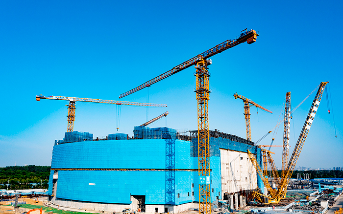 在合肥未來(lái)大科學(xué)城的核心區(qū)域,多臺(tái)徐工XGT800-40S、XGT600-25S正在系湊型聚變能實(shí)驗(yàn)裝置園區(qū)(BEST)項(xiàng)目上火熱施工。