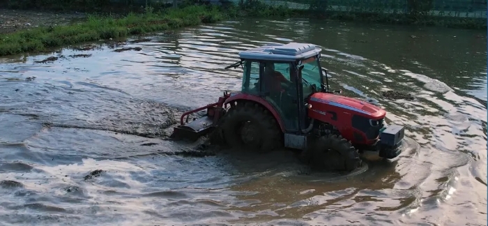 這臺(tái)機(jī)子配置高的很:用的大底盤,動(dòng)力輸出軸也是加固強(qiáng)化過(guò)的,而且它標(biāo)的是80匹馬力,實(shí)際藏著30%的儲(chǔ)備動(dòng)力,可以達(dá)到90匹馬力,就算半個(gè)輪胎陷進(jìn)去,也能輕松開出來(lái),在水田這種復(fù)雜地方,是真省心。