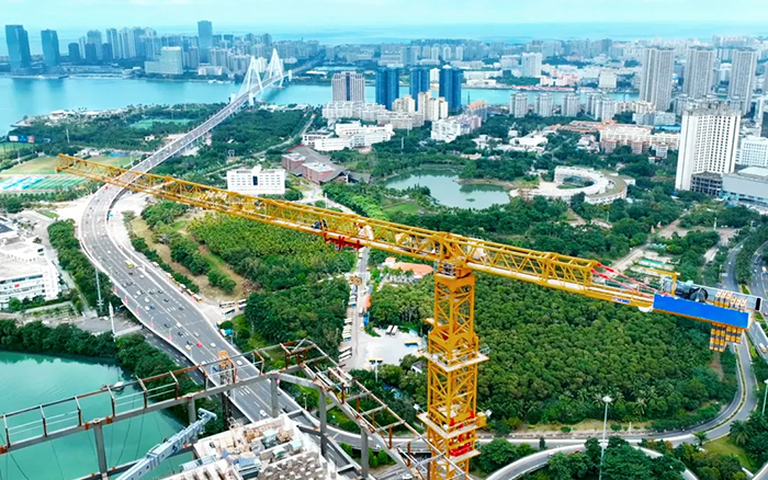 ??谥泻H中心位于海南省??谑袨I海大道與龍昆北路交匯處,主要建筑為2棟辦公大樓,1號樓34層170m高,2號樓20層80m高。徐工XGT600-25S塔機(jī)參建該項目,為現(xiàn)場施工保駕護(hù)航,助力??诂F(xiàn)代化、國際化城市建設(shè)。