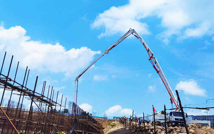 近日,在埃塞俄比亞的斯亞貝巴中地海外項目現(xiàn)場,徐工HB58V泵車擔(dān)當(dāng)施工主力軍。