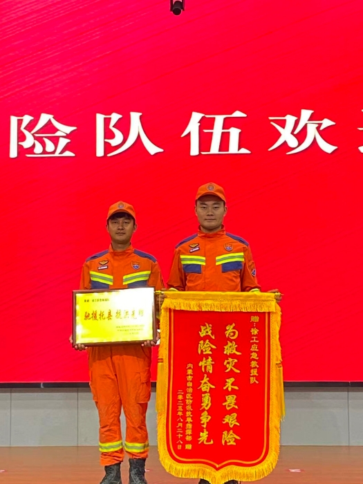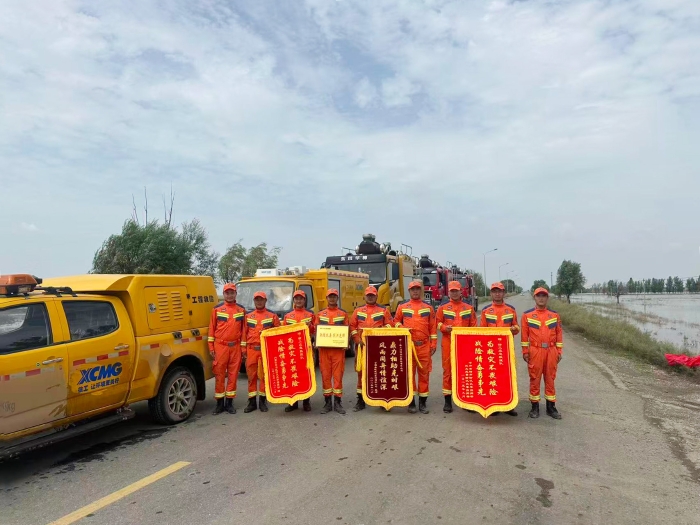 9月5日,內蒙古自治區(qū)防汛抗旱指揮部于呼和浩特市托克托縣人民政府舉行防汛搶險隊伍歡送儀式,徐工應急救援隊等馳援內蒙古的隊伍榮獲錦旗與證書。