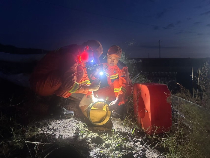 10名隊員輪班倒,迅速進入“24小時連軸轉”狀態(tài)。沒有一絲猶豫,他們踩泥漿、涉深水,卷起褲管開始鋪設水帶,科學調整作業(yè)方案。為避免抽水作業(yè)沖刷壩體,他們利用橡皮艇涉水劃到農田中間固定水帶,以專業(yè)判斷化解潛在風險,彰顯科技救援的力量。