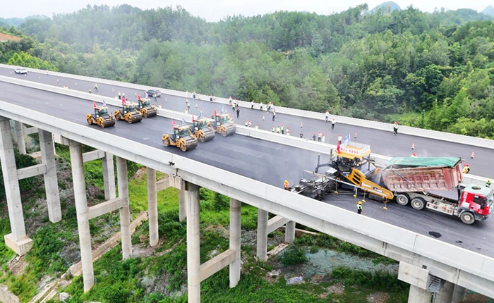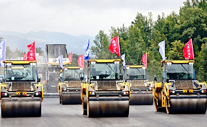 智慧施工管理平臺(tái)實(shí)時(shí)呈現(xiàn)碾壓軌跡、變速曲線(xiàn)、施工速度及溫度數(shù)據(jù)。攤鋪機(jī)高效輸分料系統(tǒng)適配超寬幅作業(yè),壓路機(jī)深入結(jié)構(gòu)層實(shí)現(xiàn)全維度壓實(shí),晝夜不間斷施工。